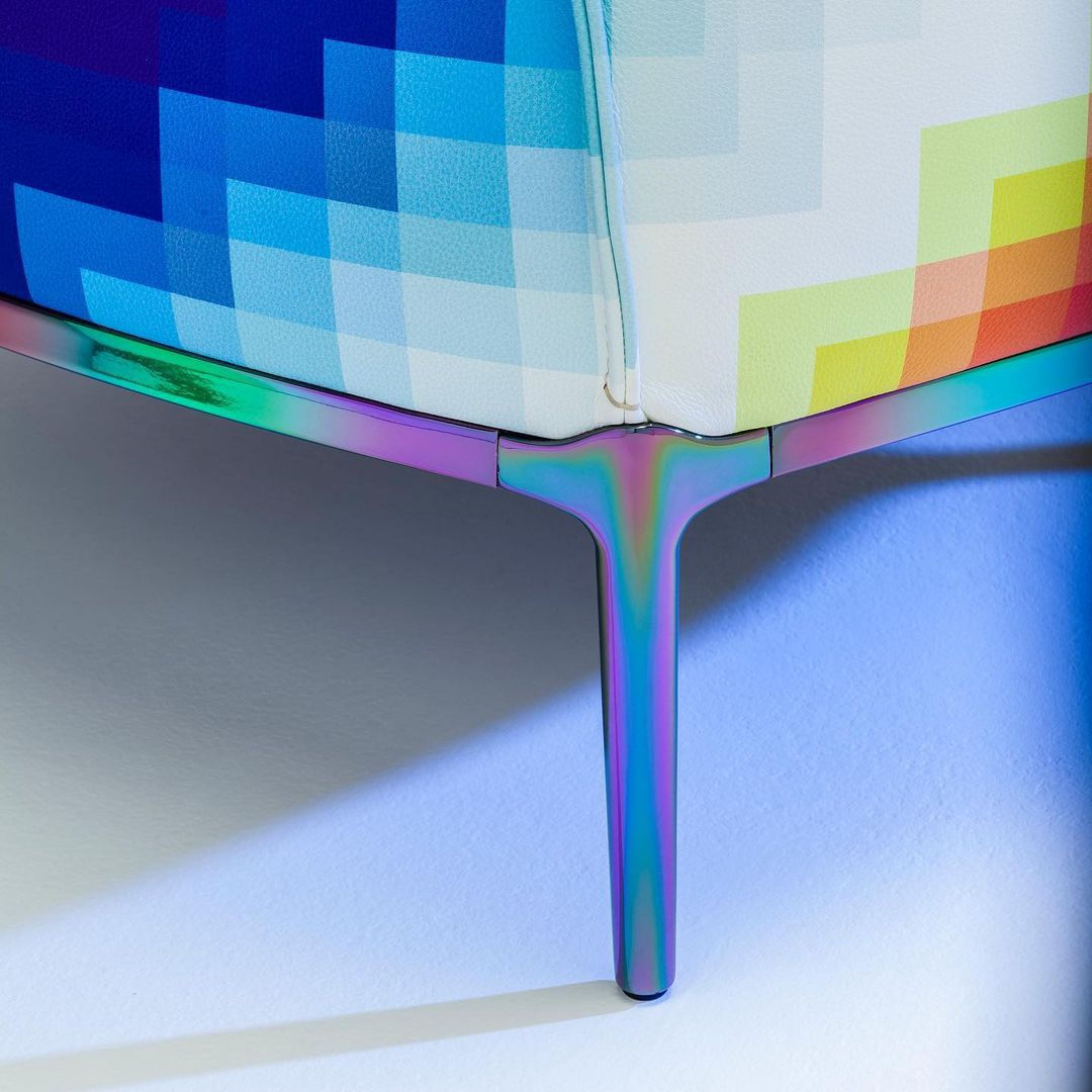 Recientemente el artista Felipe Pantone presentó su más nueva colaboración con Poltronafrau, una interpretación de su Sillón Archibald intervenido con el estilo característico de Pantone. La silla FPxPF es una edición limitada de 110, que celebra el 110 aniversario de Poltrona Frau.